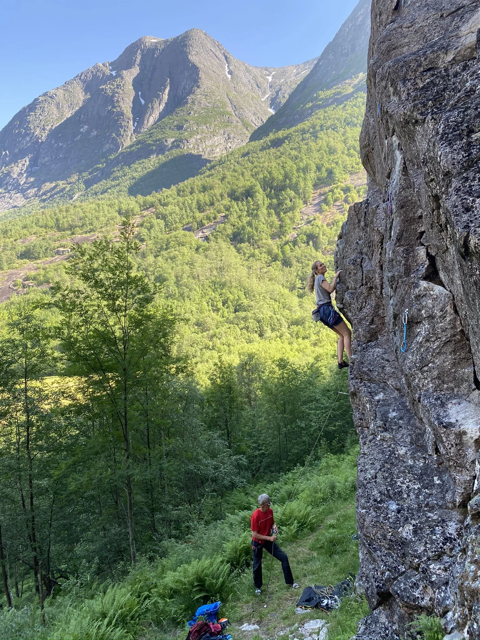 Ann Kristin klatrer i vakre omgivelser.